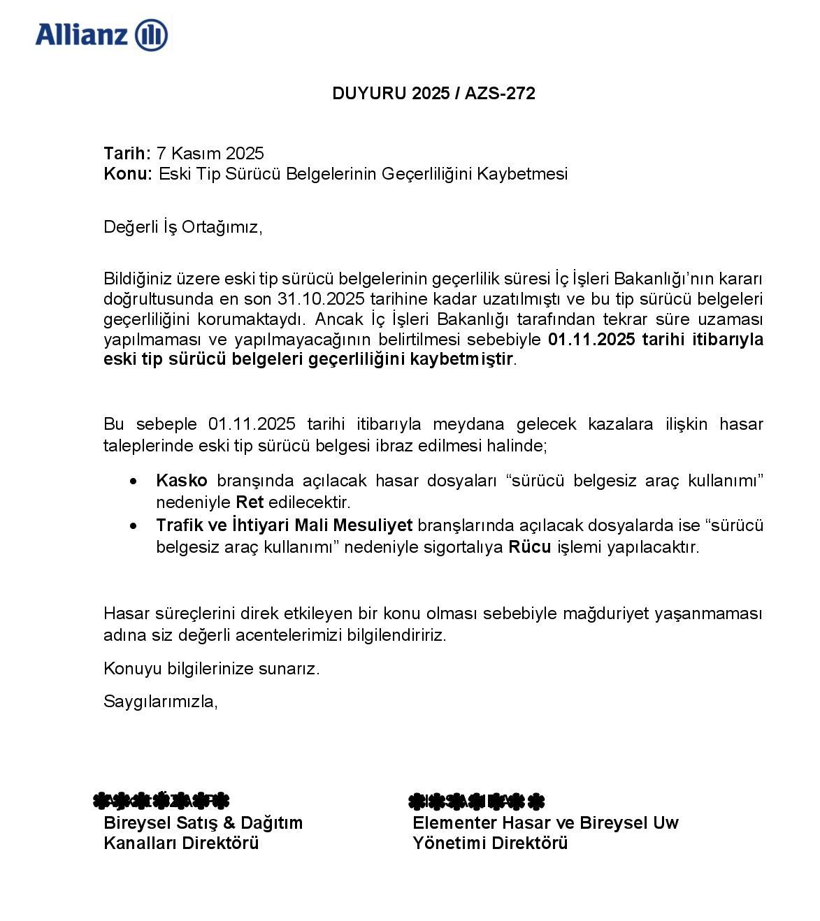Sigorta şirketleri eski sürücü belgesi ile kaza yapılması durumunda ;